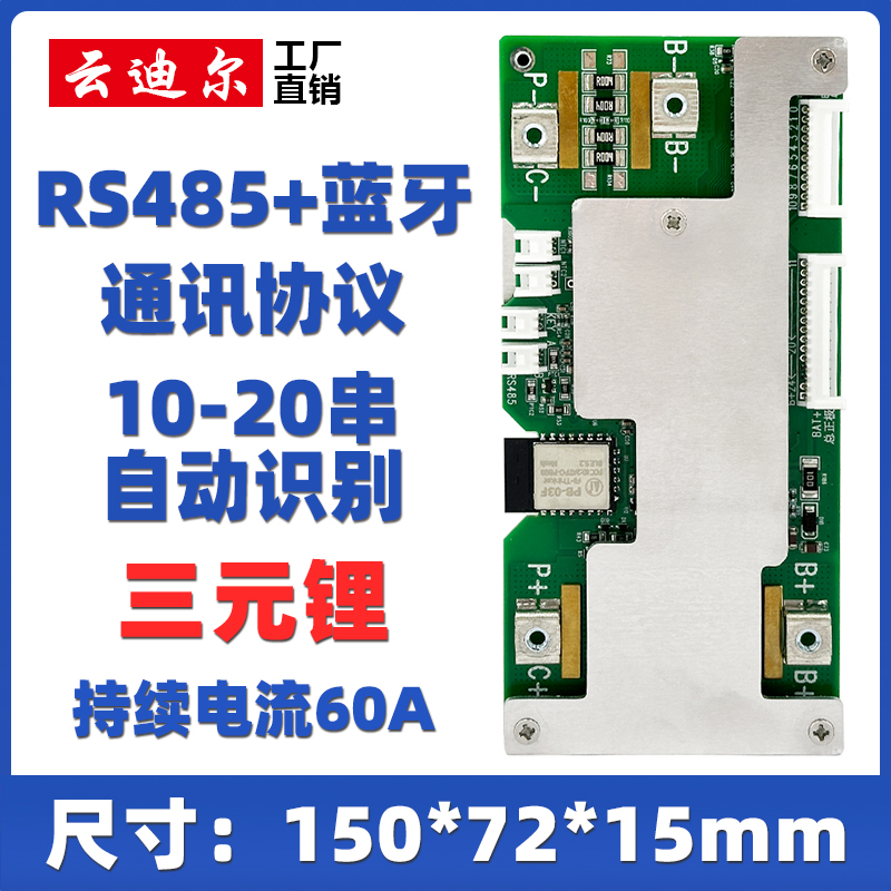 自动识别6-20串三元锂正极同口RS485蓝牙通讯持续电流60A主动均衡0.6A