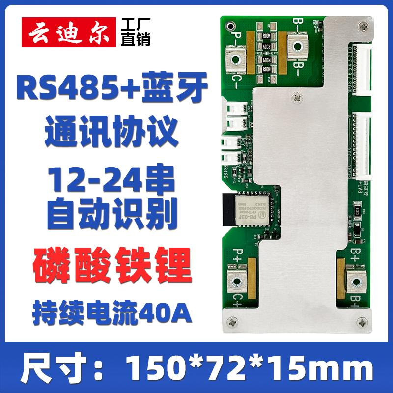 自动识别8-24串磷酸铁锂正极同口RS485蓝牙通讯持续电流40A主动均衡0.6A