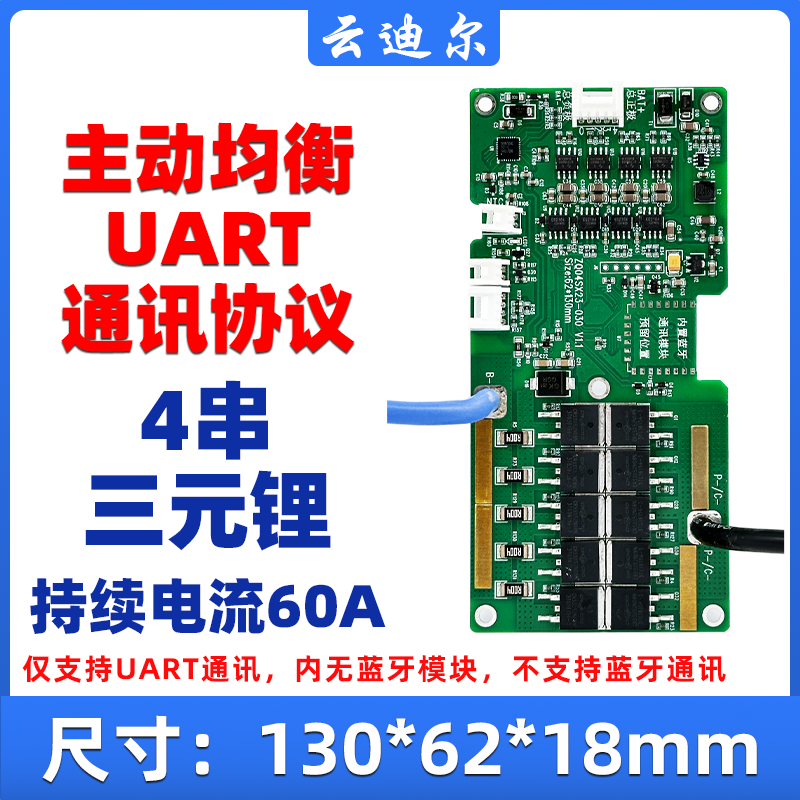 固定串数4串三元锂负极同口仅UART通讯持续电流50A主动均衡0.4A