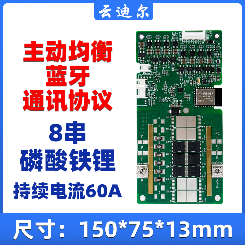 固定串数8串磷酸铁锂负极同口内置蓝牙持续电流60A主动均衡0.4A