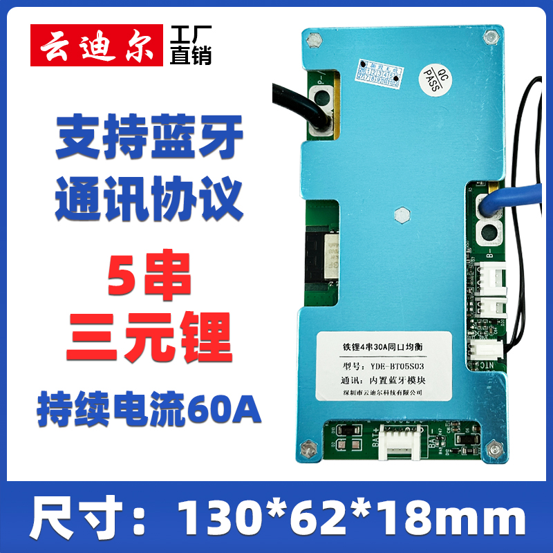 固定串数5串三元锂负极同口内置蓝牙持续电流60A被动均衡