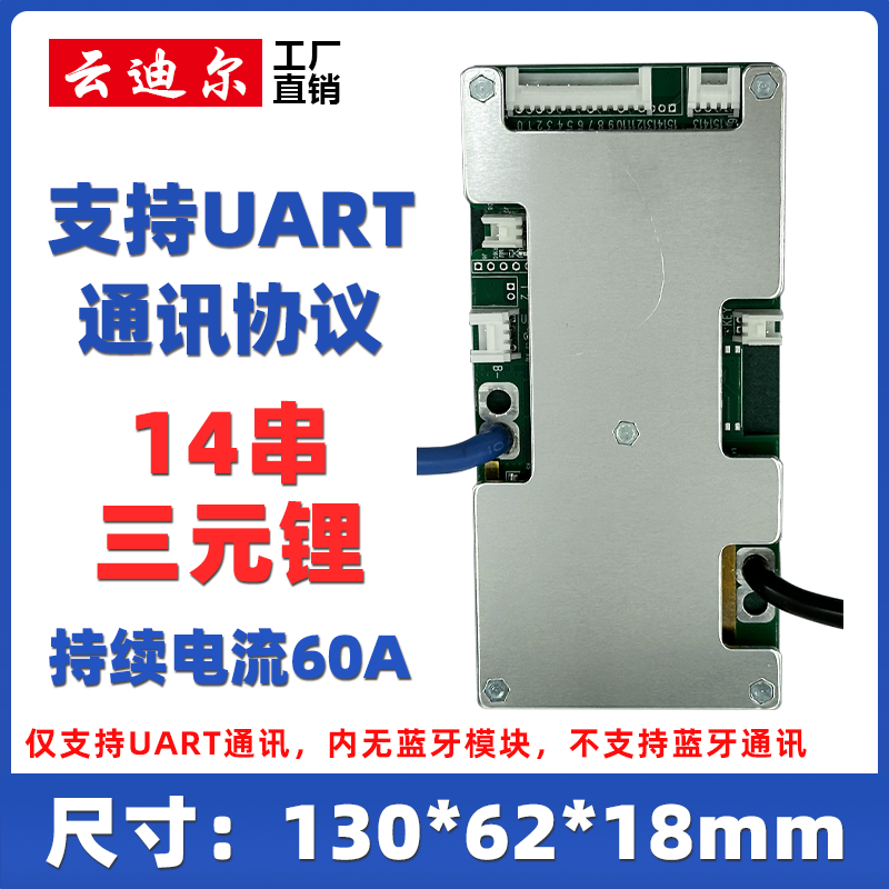 自动识别6-16串三元锂负极同口仅UART通讯持续电流40A被动均衡
