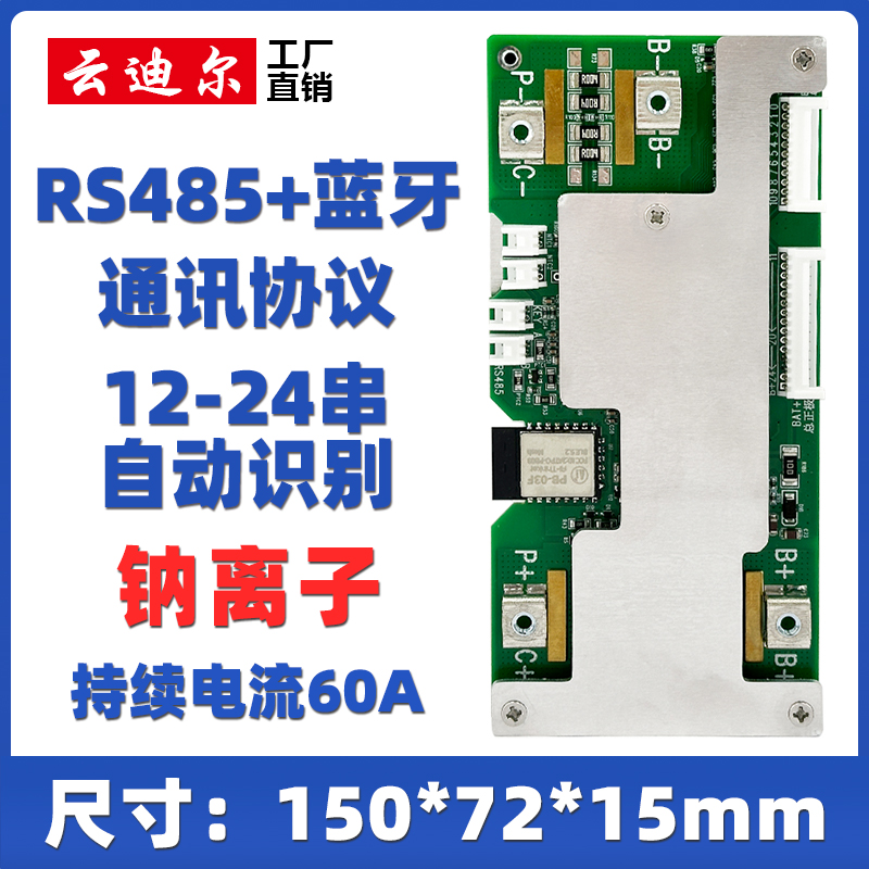 自动识别12-24串钠离子正极同口RS485蓝牙通讯持续电流60A被动均衡