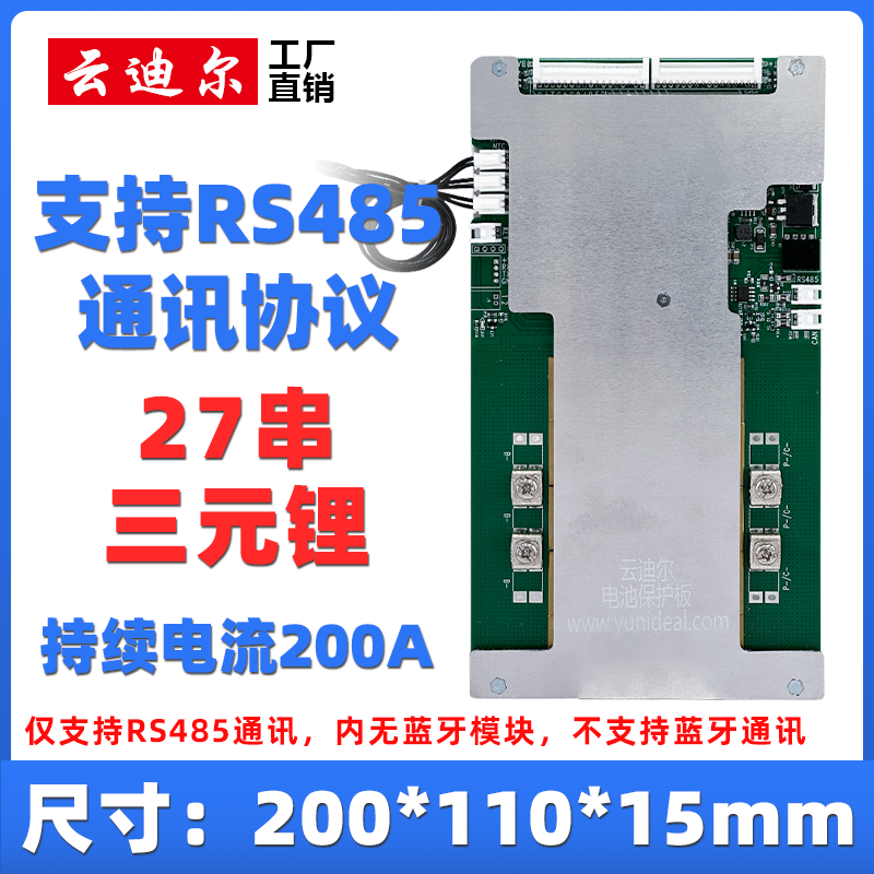 固定串数27串三元锂负极同口隔离RS485通讯持续电流200A被动均衡